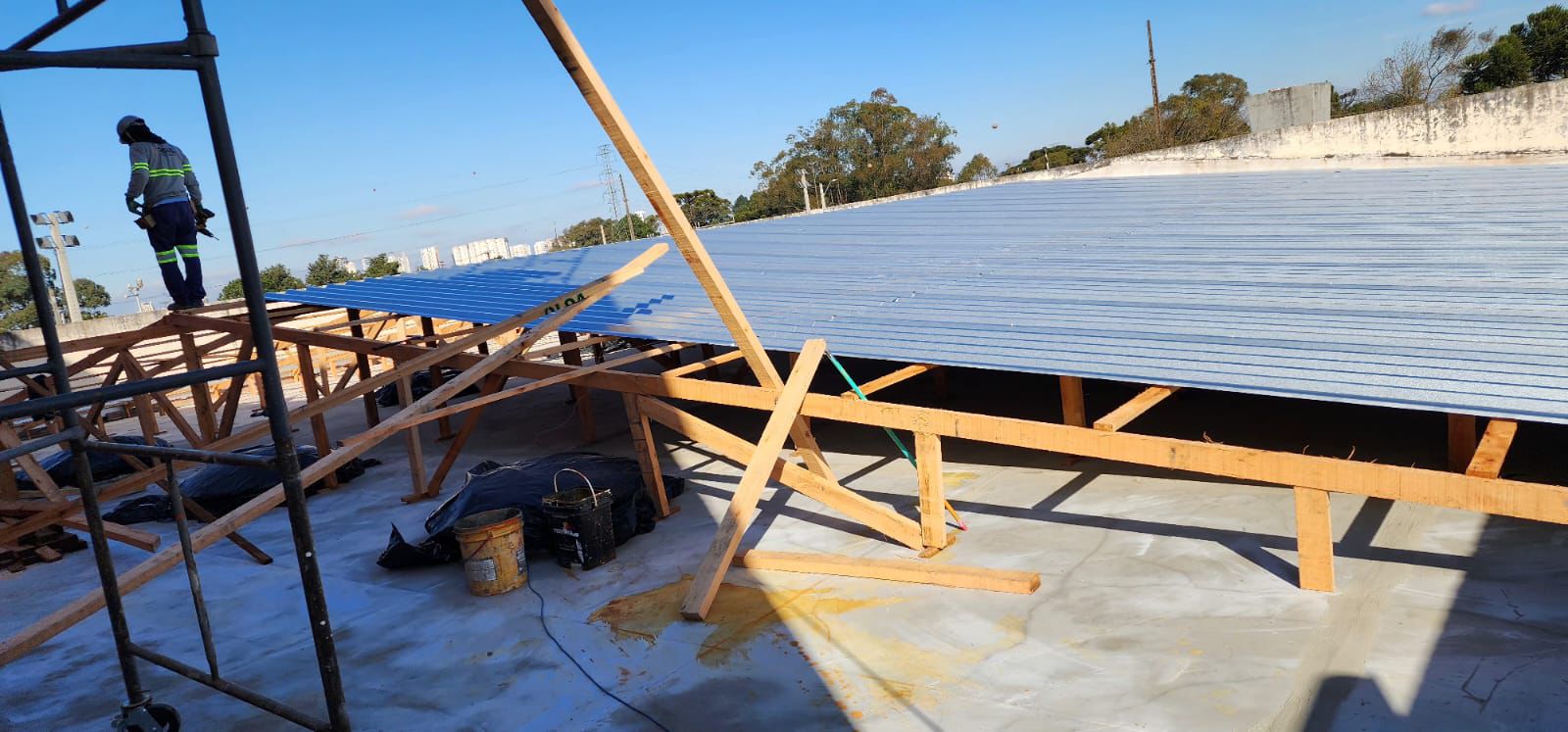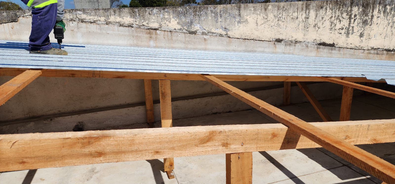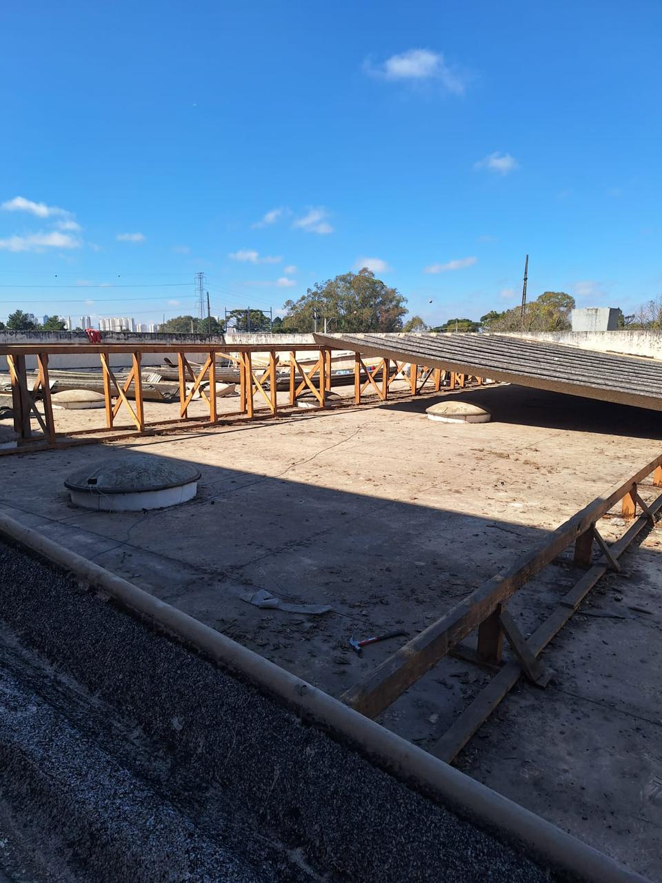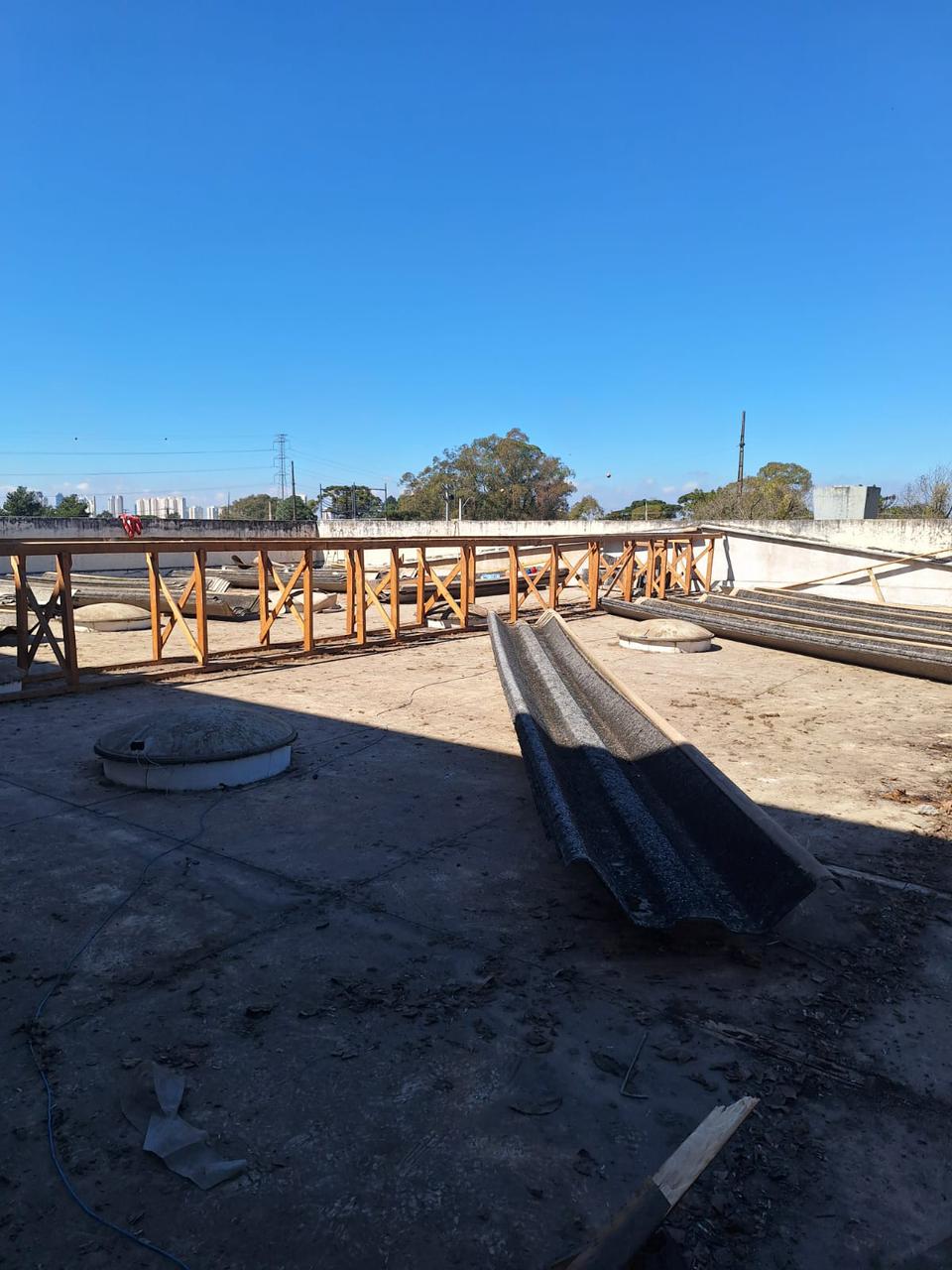 Dia 1 - Retirada de telhas e Madeiramento